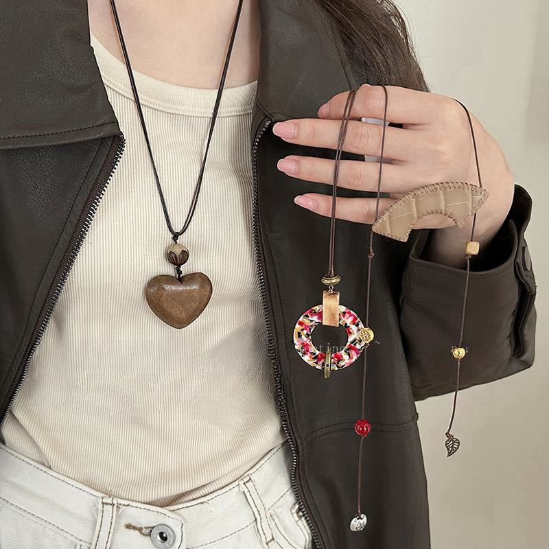 新しい中国式の木製の愛のセーターのチェーンの女子学生の秋冬の気質の長いタイプの黒い縄は小さい大衆の高級感のガードルのチェーンを飾ります。