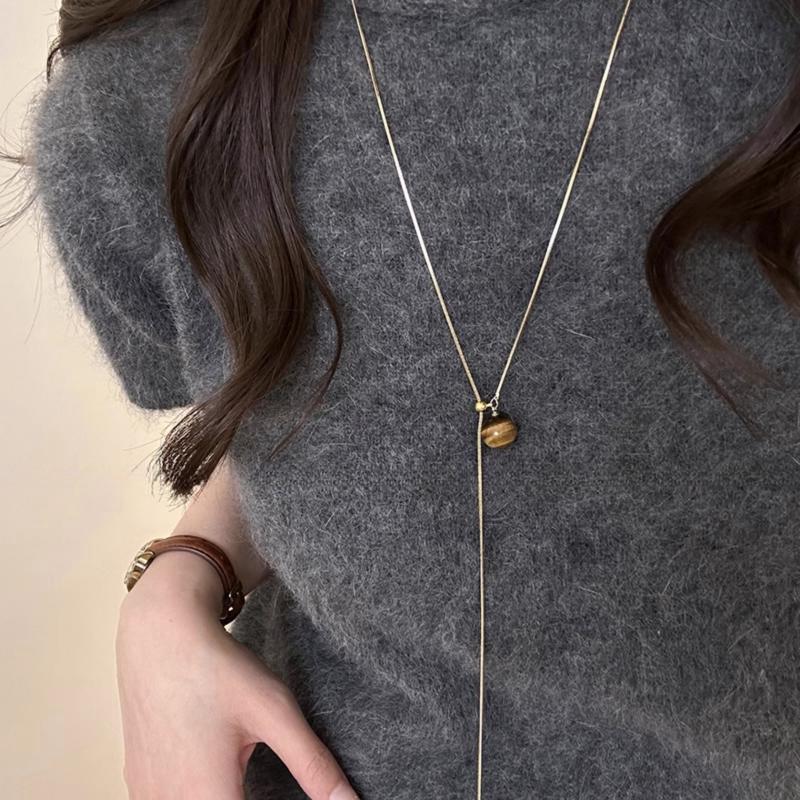 デザイン感虎眼石秋冬長型セーターチェーン2024新気質軽贅沢高級感ネックレス女性アクセサリー