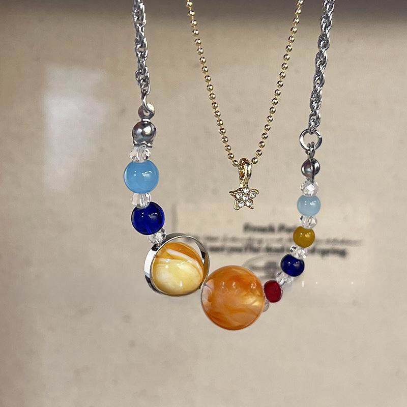 天文館から来た惑星のネックレス2024の新型の爆発的なデザインは独特で、鎖骨鎖の女性を重ねている
