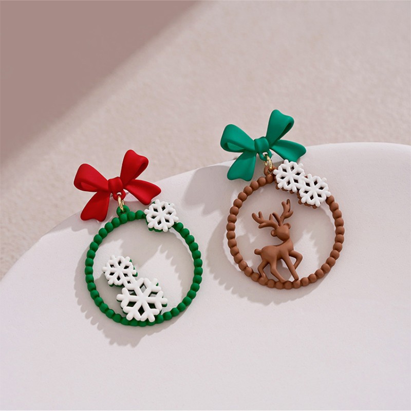 赤い緑の蝶結びのクリスマスのピアスの独特な大衆のデザイン感の非対称イヤリングの森系の小さい清新な耳飾りの女性