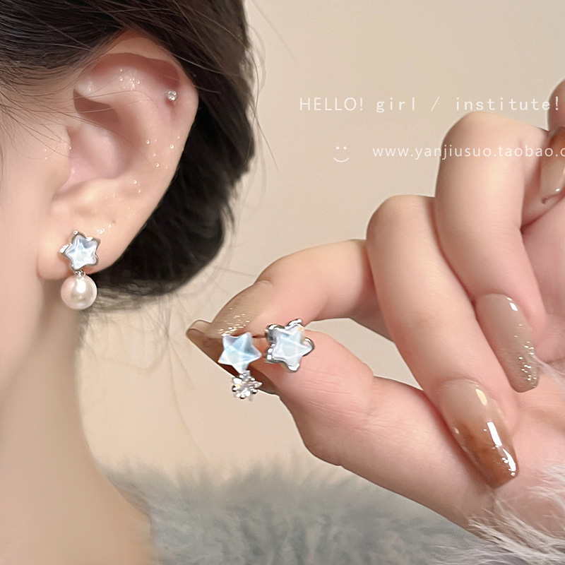 海塩青 ~ 星ジルコンピアス女の新型2024起爆真珠イヤリング軽贅沢高級感洗練イヤリング