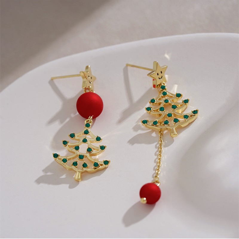 クリスマスシリーズ ~ 雰囲気感クリスマスツリーイヤリング2024新起爆高級感星イヤリングピアス