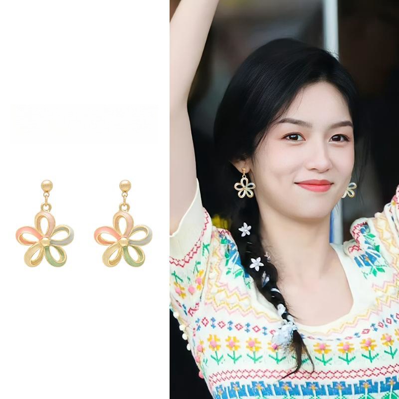 カラーの小さい清新な花のイヤリングの女性のドーパミンのリゾート風のピアスのイヤリングの丸い顔の似合うデザイン感の耳飾り