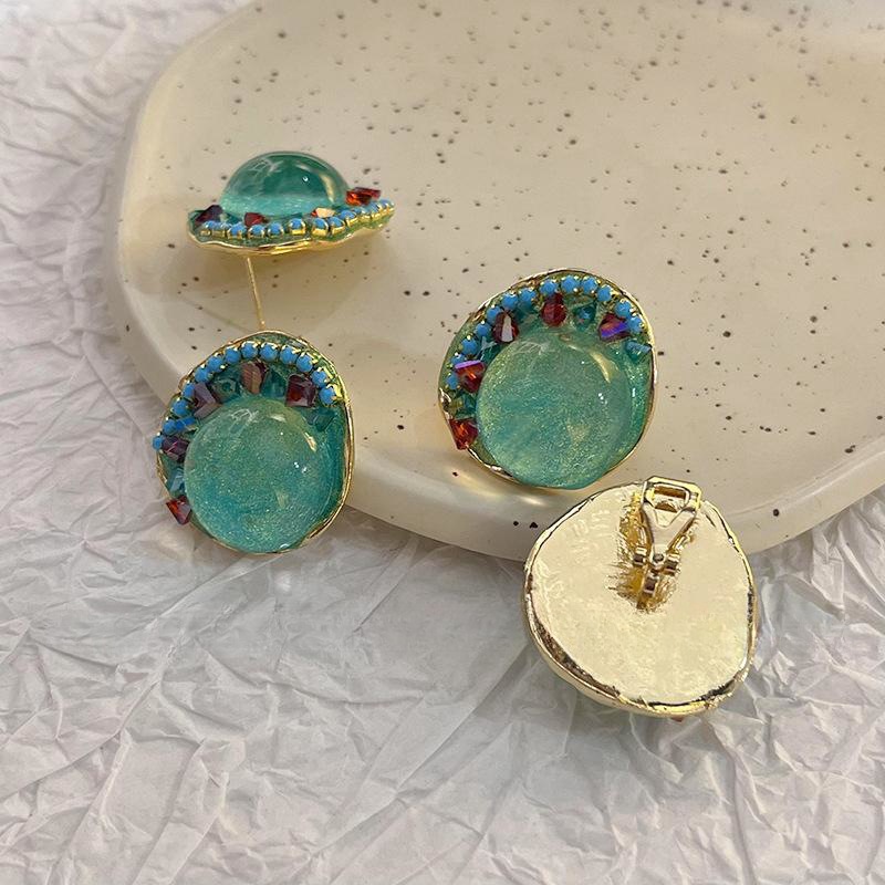 「花間晴」中古ヴィンテージピアス宮廷レトロ水晶瑠璃カラードリル軽豪華気質イヤリング