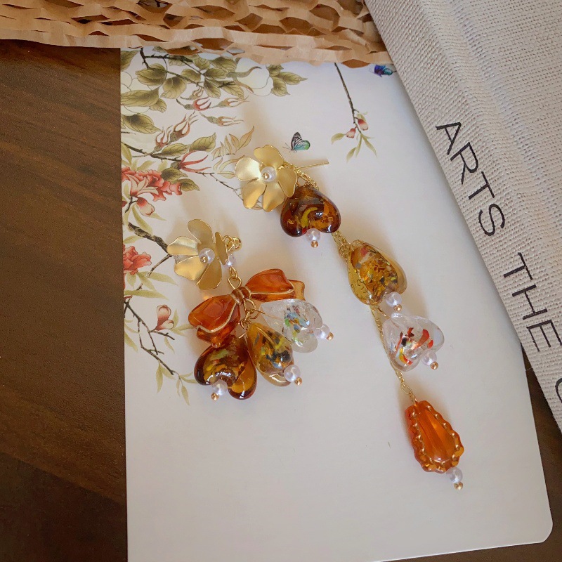 落日琥珀復古油絵芸術瑠璃2024年新型大衆設計新中国式イヤリング女