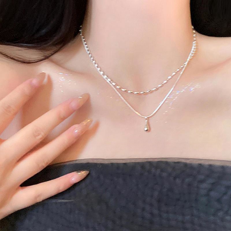 銀色の二重水滴のネックレスの女性の夏の2024の新型の爆発金の日常の通勤は簡単で冷たい風の鎖を飾ります。