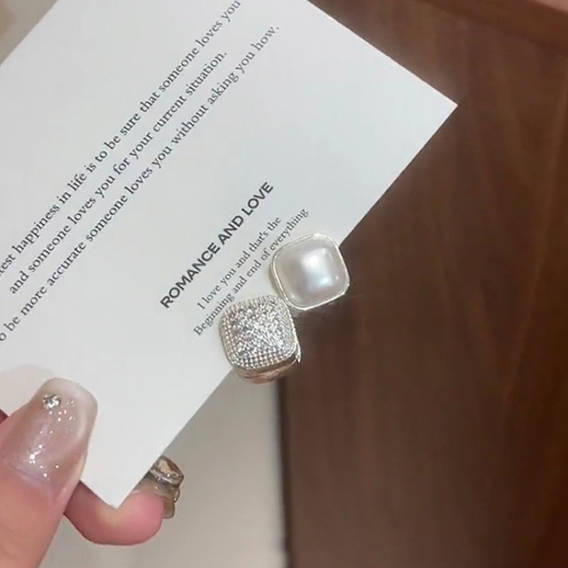 大衆のデザイン感の両面には、スクエアパールの耳掛けがあります。フランス風のシンプルな雰囲気のイヤリングです。