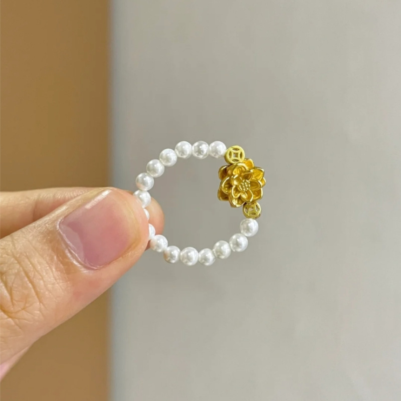 ツバキの真珠の指輪の女性の大衆の設計の2024新型の食指の指輪のファッションの個性の高級感の指輪