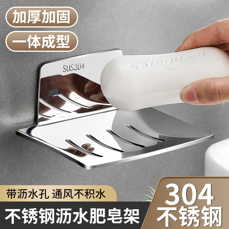 ステンレス鋼のソープボックスラック家庭用バスルームラックトイレ多機能ディッシュラックパンチフリー壁掛け石鹸排水管