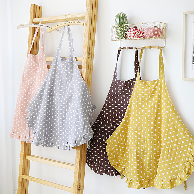 ウォッシュドコットン水玉エプロン防水防油ノースリーブホルターネックエプロン家事掃除かわいい小さなクリーンエプロン