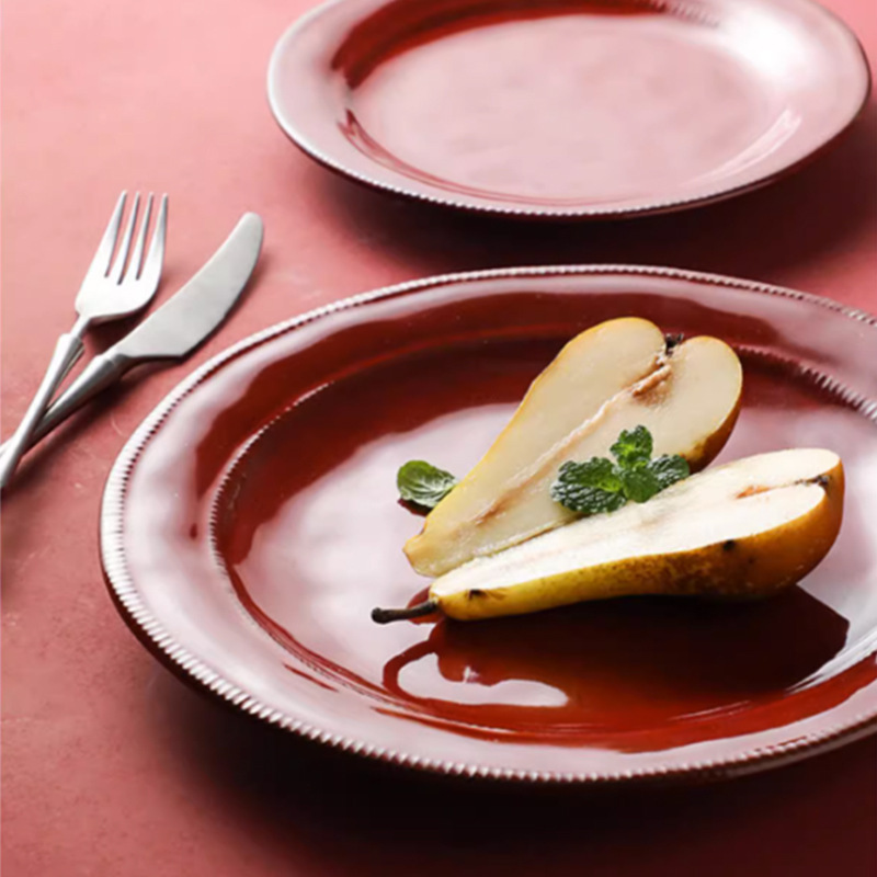 レトロなスタイルの赤い平皿浅いプレートセラミックステーキプレート洋食プレート家庭用大型ディッシュプレートクリエイティブディナープレート送料無料