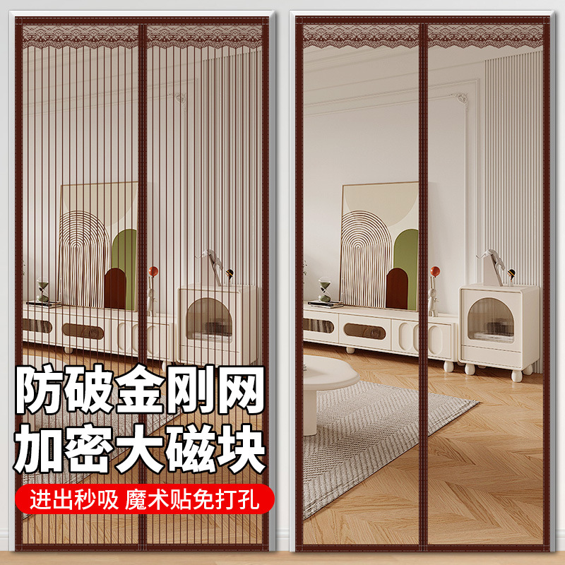 キングコングメッシュ防蚊ドアカーテン家庭用磁気ソフトガーゼドアパンチフリーベルクロ自吸式ガーゼカーテン寝室パーティションカーテン