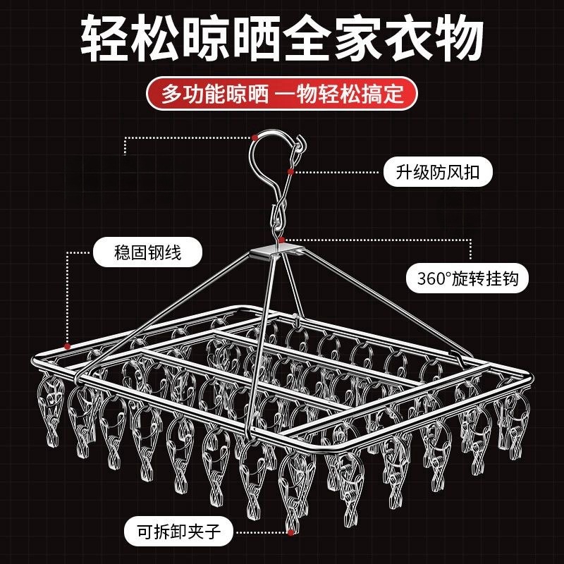 靴下を乾燥させるためのマルチクリップ付きステンレス鋼の衣類ラック、正方形の下着、ベビー服ラックフック、家庭用多機能靴下乾燥ラック