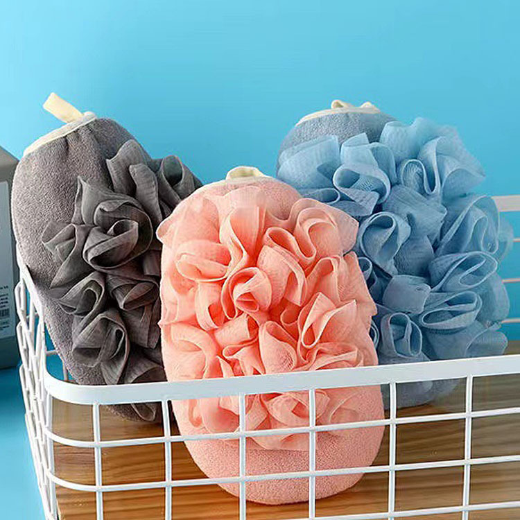 浴室の両面のボディタオルの男性の女性は手袋の形でボールの花を入浴して皮膚を傷つけません。