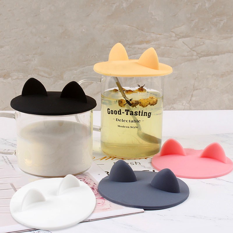かわいい猫耳シリコンカップカバーセラミックカップ蓋ガラスカップカップカップ防塵マグカップカバー円形