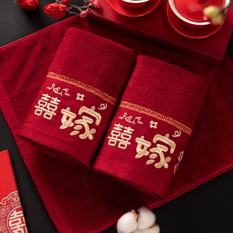 タオル結婚式ペア速乾お祝い持参金赤ダブルハピネスリターンギフト結婚式のお土産結婚式用品