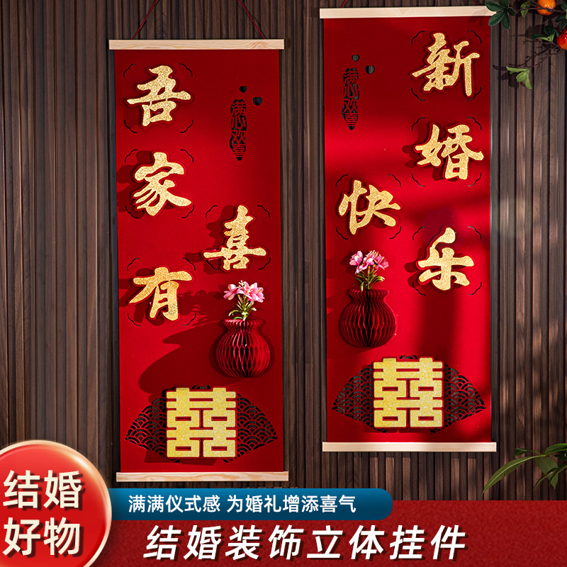 結婚式の立体装飾ペンダント結婚式の部屋の背景壁レイアウト新しい家のリビングルームの玄関階段壁スクロールタイプ吊り絵画