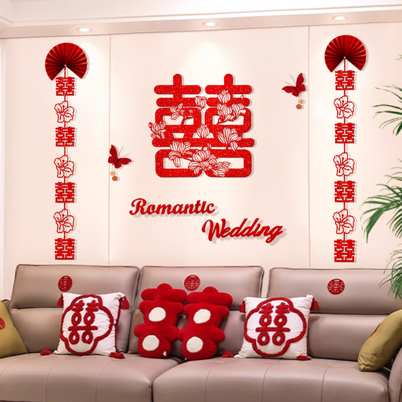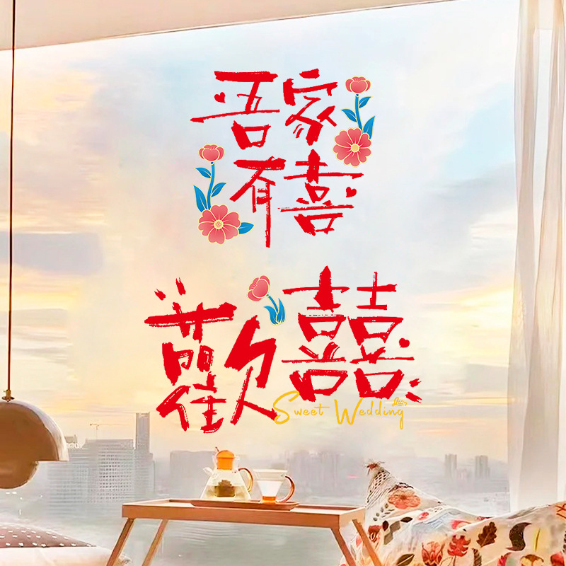 喜字結婚専用虹静電シール女性の結婚部屋に窓ガラスを配置して結婚用品を準備する大全