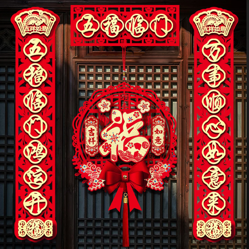 対聯2025年新型蛇年新年旧正月家庭用玄関装飾旧正月高級立体植毛布春聯