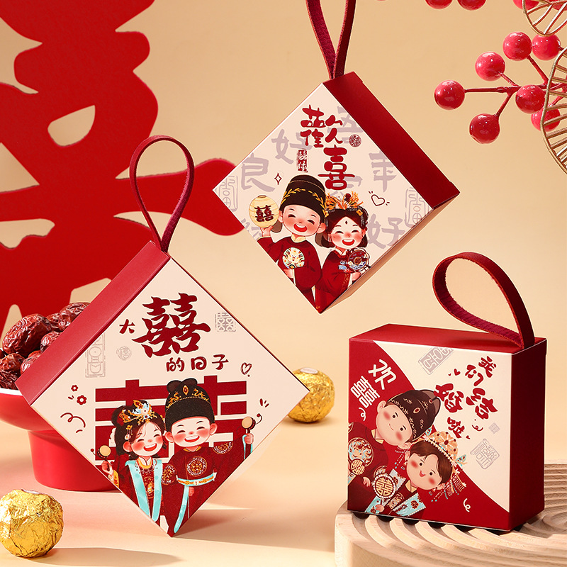 喜糖箱結婚礼皮質手提げ喜糖箱結婚祝い礼箱包装新創意結婚礼喜空箱