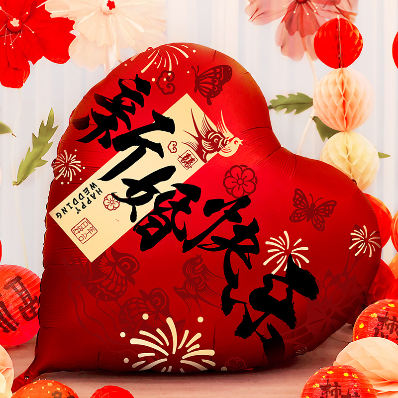 結婚部屋には超巨大な愛のアルミ膜風船が配置されています。