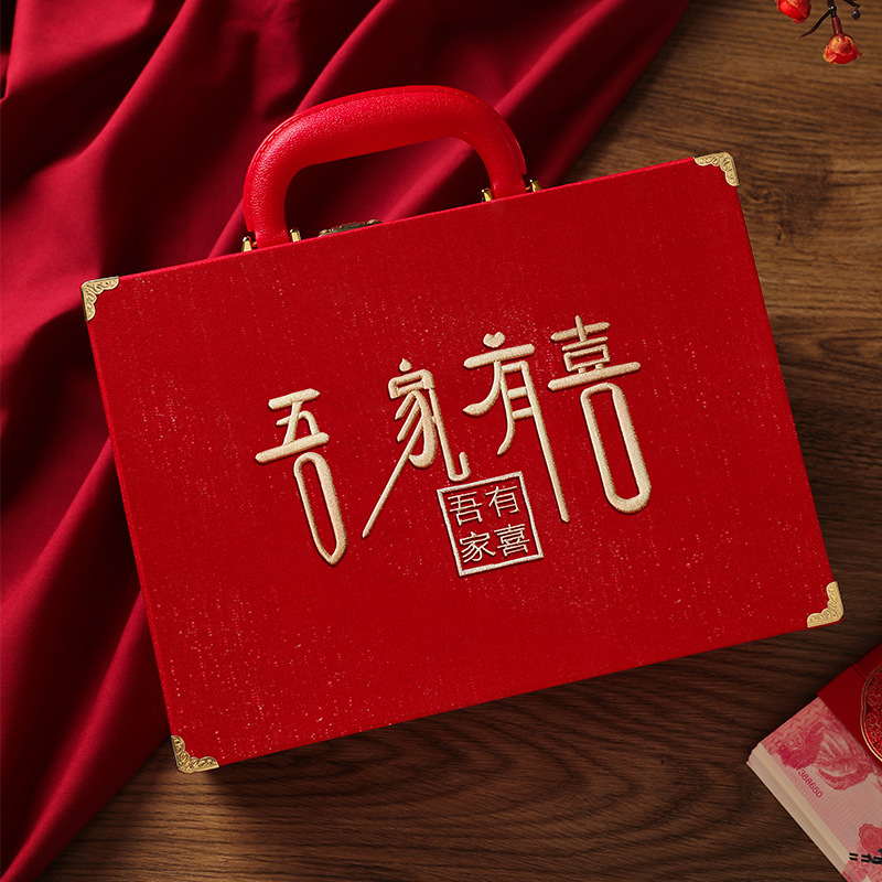 彩礼銭箱男性が婚約した礼金箱10万現金金彩礼箱結納金20万酒紅植毛募集礼箱