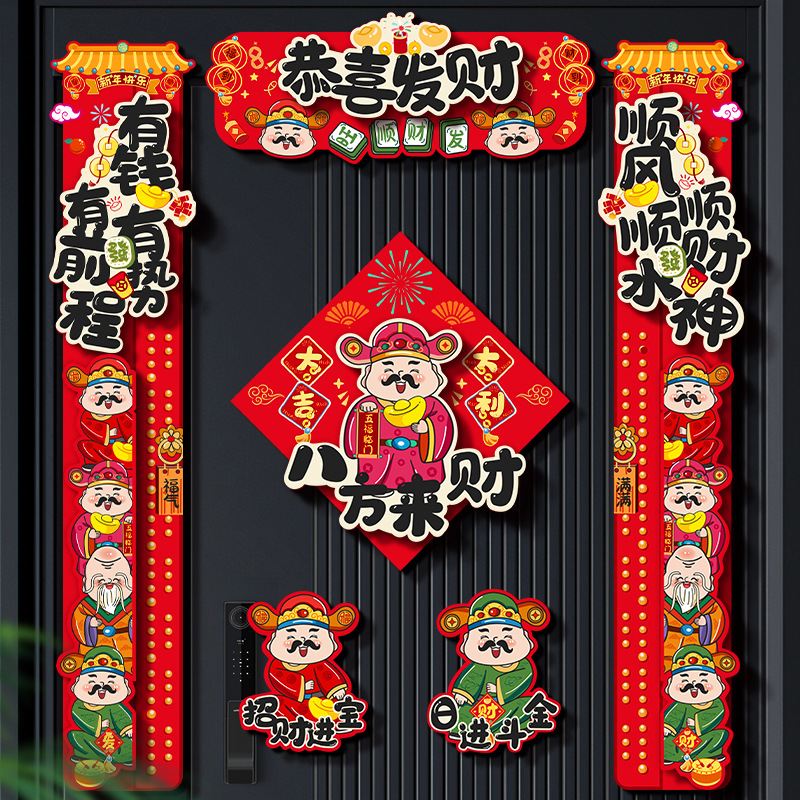 新年対聯2025新型蛇年マグネット春聯春節飾り正月福字門貼りストラップ立体門連