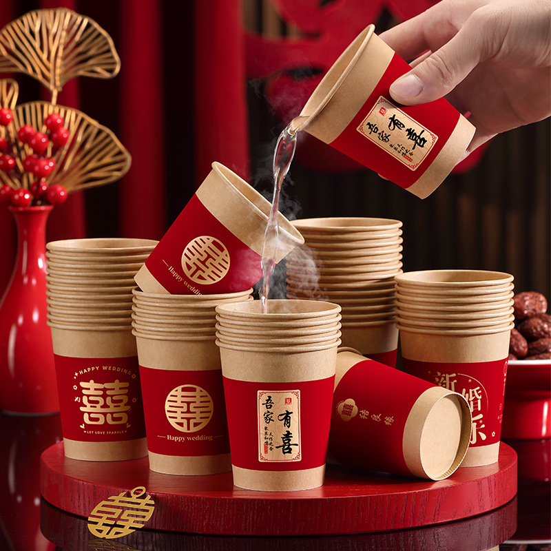結婚使い捨て紙コップ結婚式赤い喜コップを厚くして披露宴家庭用祝杯結婚祝い用品大全