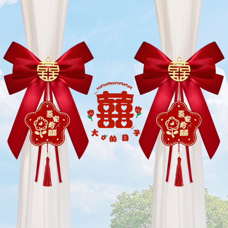 結婚式の部屋の装飾、カーテンストラップ、女性の新居の装飾、リビングルームと寝室、男性のマスターベッドルーム、結婚式のハッピーワードの吊り下げ装飾
