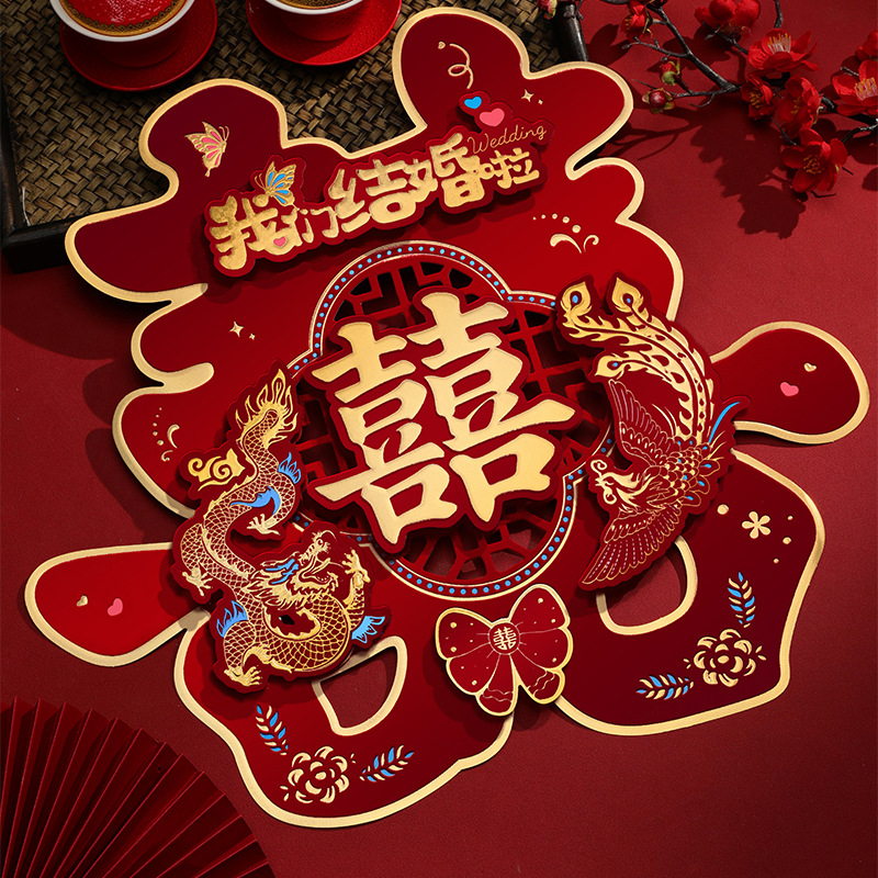 喜字は結婚専用の龍鳳双喜寝室のドアを貼ります。