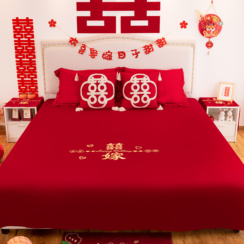 結婚の赤いシーツの結婚の部屋のベッドのお祝いの用品の大全の女性の方は結婚の部屋に行って装飾品の2024新型を配置します。
