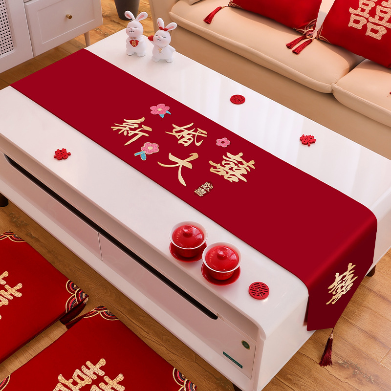 お茶の数の結婚のテーブルクロスのテーブルの旗の実家の結婚の部屋は嫁いで飾って食卓の赤い蓋の布の結婚の用品の大全を配置します。