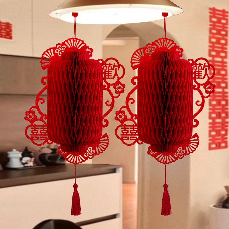 結婚式の立体提灯ペンダント、囍の文字、結婚式の部屋のドアの装飾、婚約ドアの装飾、ドアの装飾、結婚式の部屋の装飾