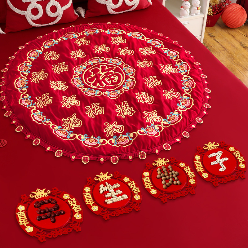 結婚して福のクッションに座って福の字の百福を刺繍します。