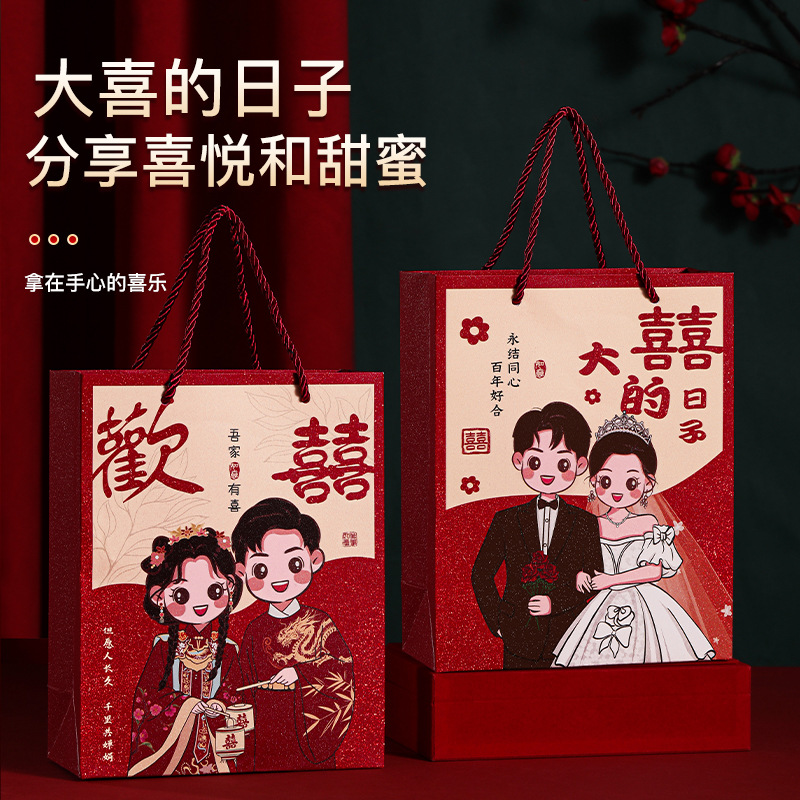 結婚専用の喜糖手提げ袋婚約お土産箱喜糖箱結婚式はタバコと酒のプレゼントを入れて空の袋を包装します。