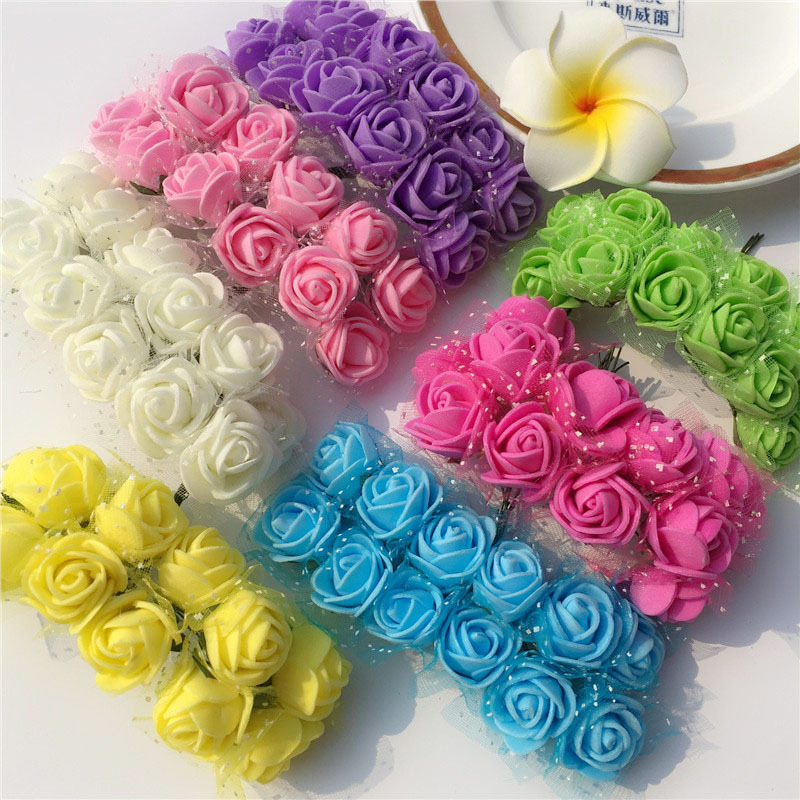 バラの花の頭pe花の針金の泡の花のシミュレーションの花の卸売りの砂糖の箱の部品のシミュレーションの花の造花の花束の泡の花
