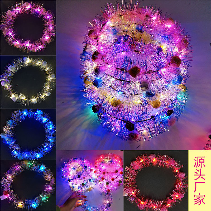 クロスボーダー爆型led発光金糸花輪森女日韓藤条頭飾り観光地区の露店で発光玩具を販売しています。