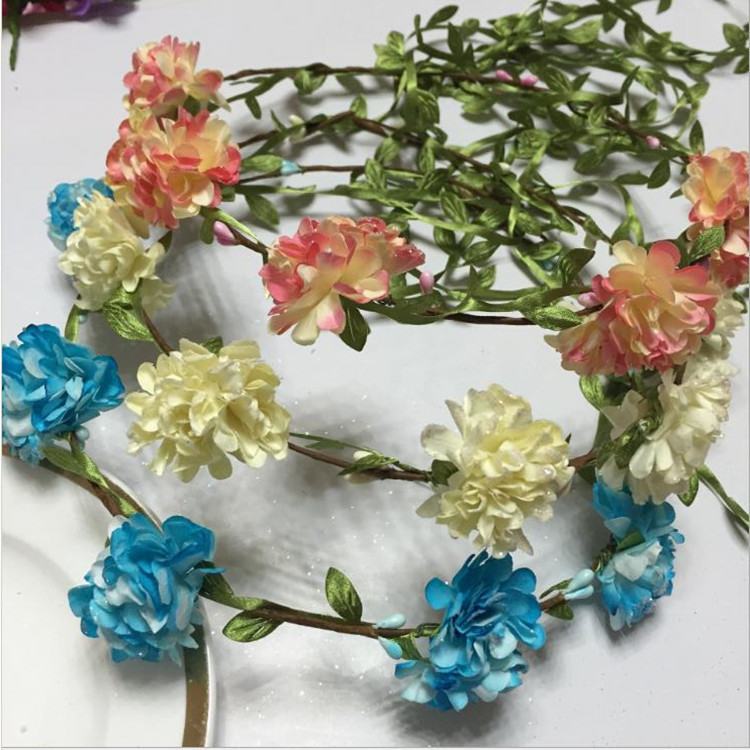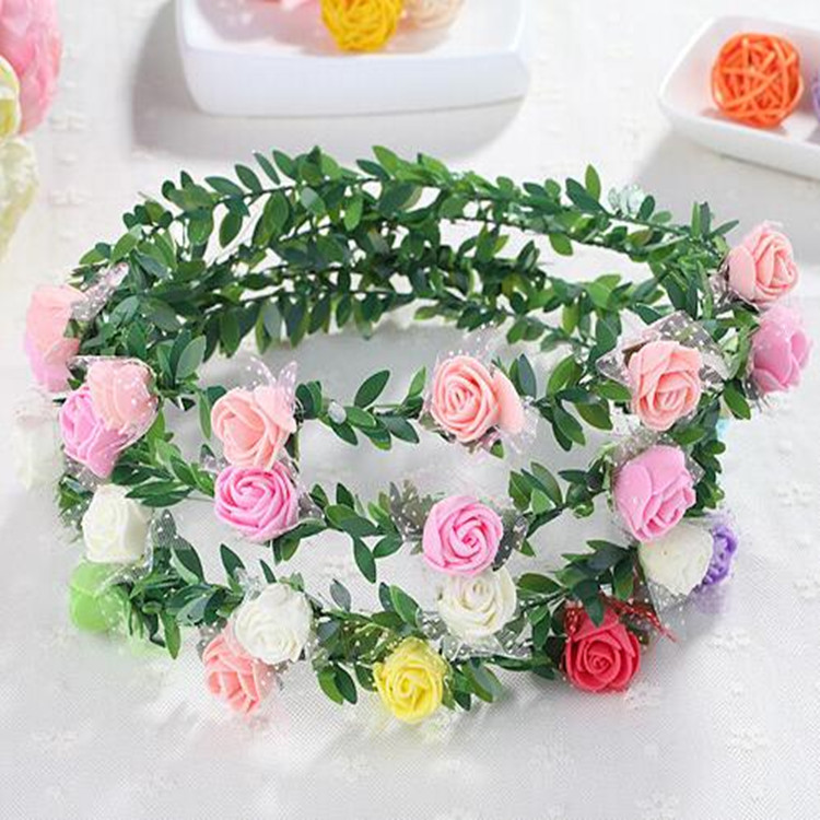 メーカーの商品の供給源観光スポットの旅行のカチューシャのリボンの長い緑の葉の花輪のバラの花の新婦の髪飾りのカチューシャの越境