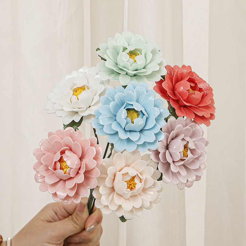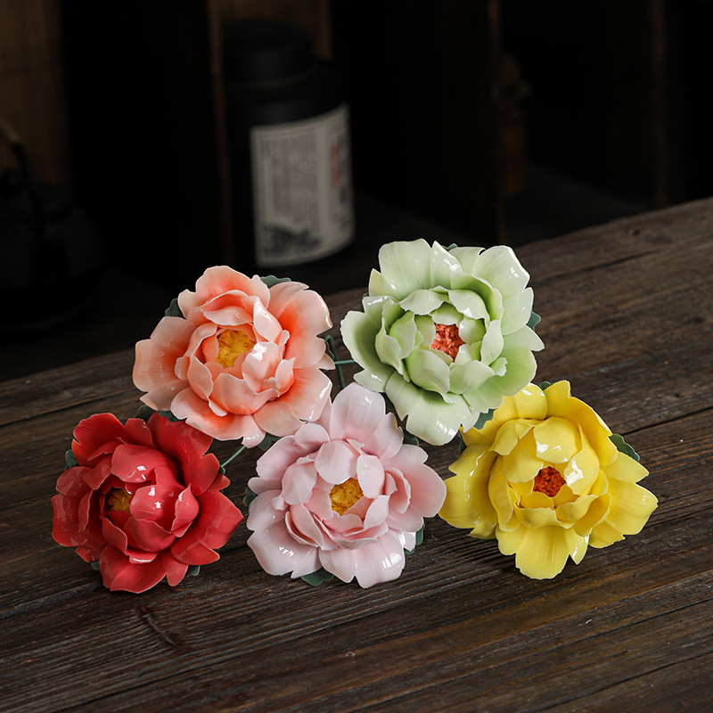 新しい中国風のクリエイティブな手作りセラミックかわいい花の装飾品デスクトップ装飾品フラワーアレンジメント工芸品セラミック装飾品
