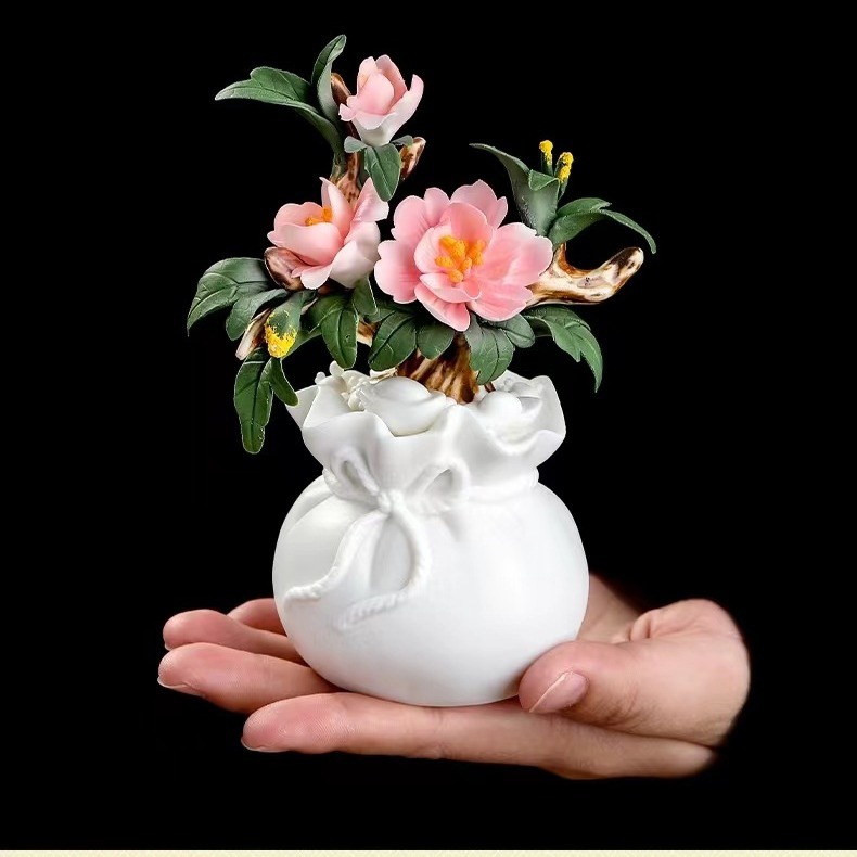 陶磁器の手はボタンの磁器の花の布袋のボタンをつまんで飾って客間の茶室のデスクトップを飾って家庭の装飾品を飾っています。
