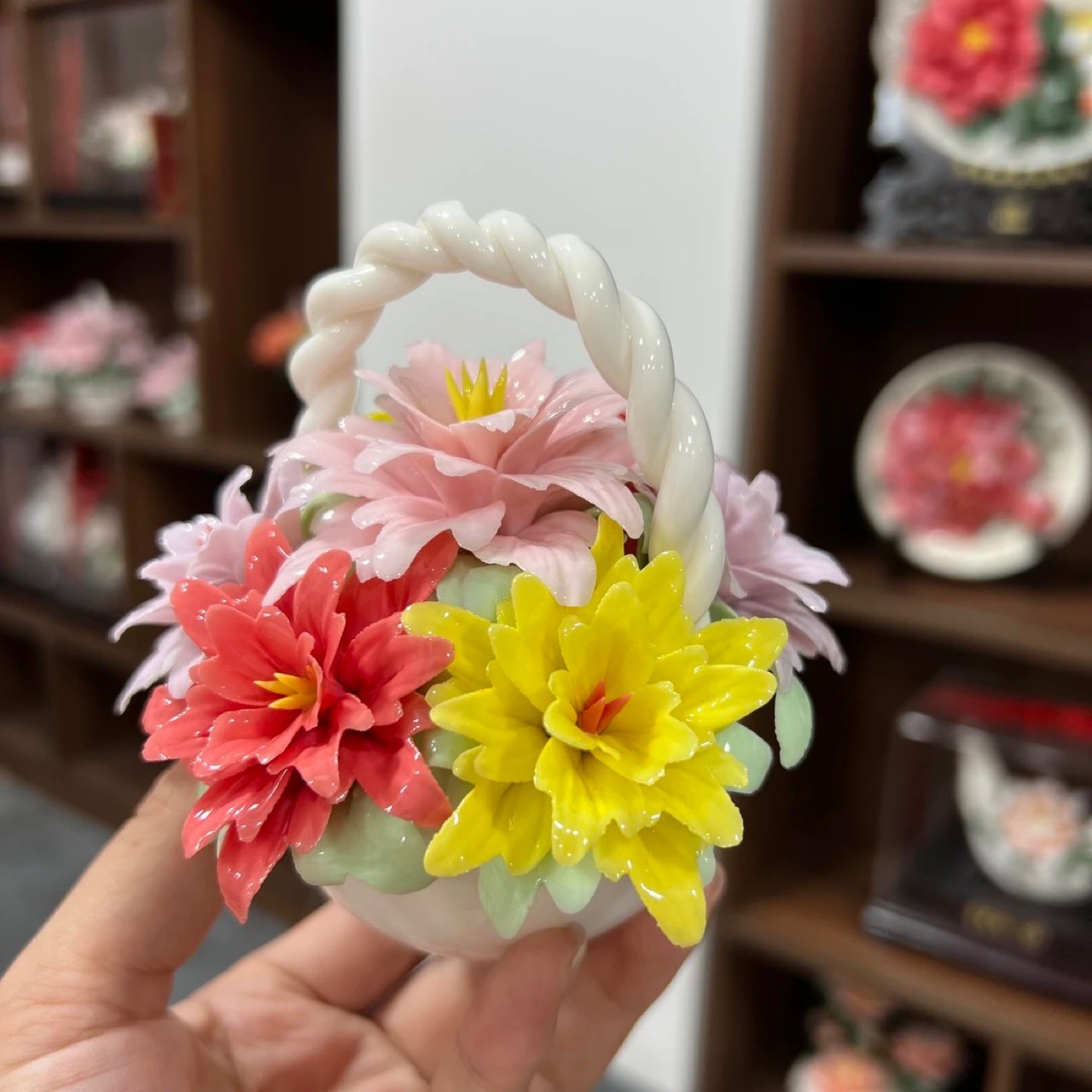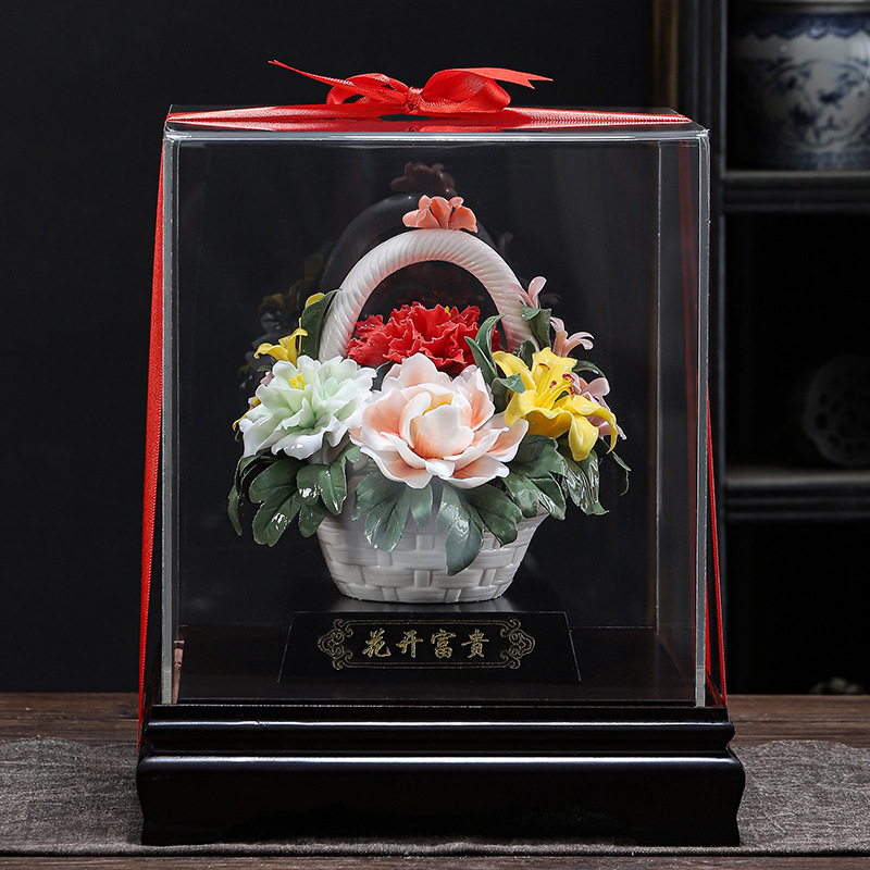 陶磁器の牡丹の花のかごのアクリルの置物は開業します。