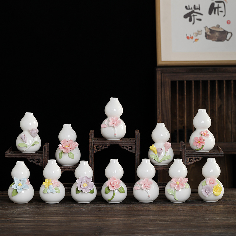 セラミック小さな手作りひょうたん花瓶絶妙でシンプルな新しい中国風のセラミック手作り花瓶ホームデスクトップ装飾
