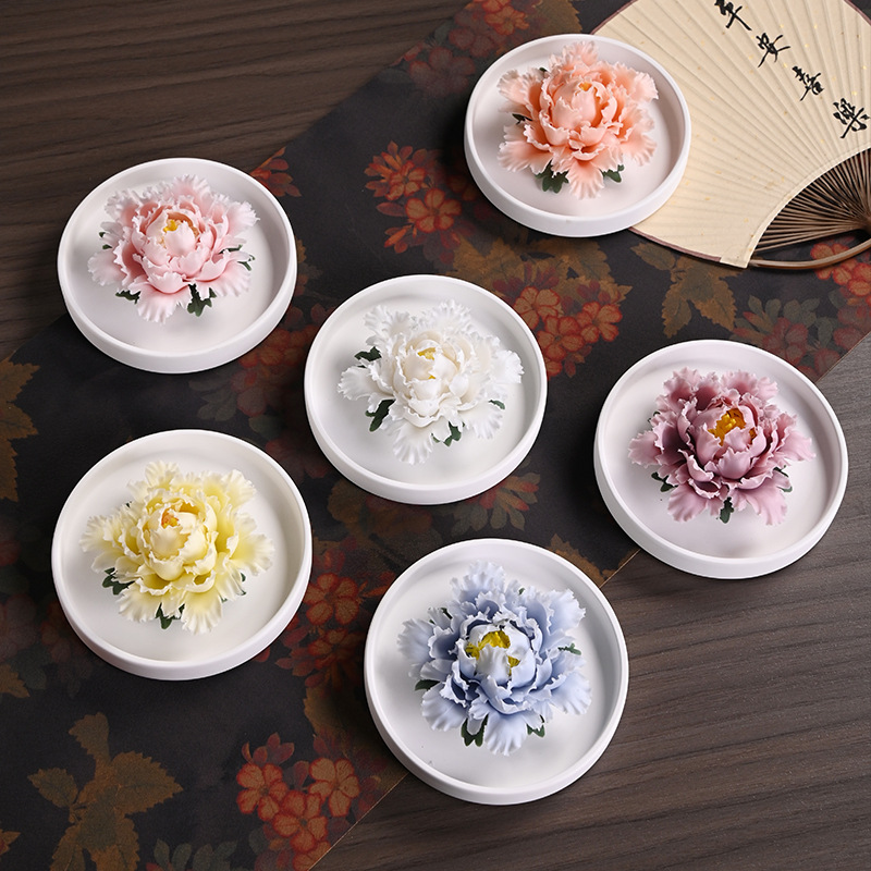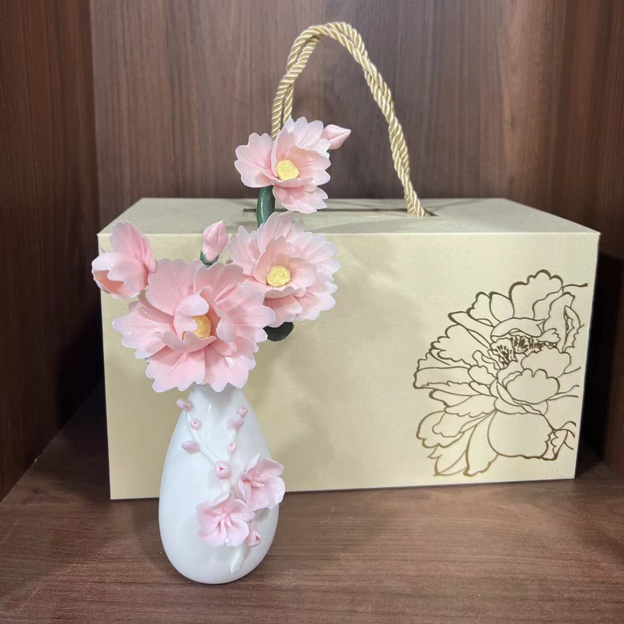 陶磁器の手作りの手は花の牡丹の花の礼箱をつまんで贈り物をします。