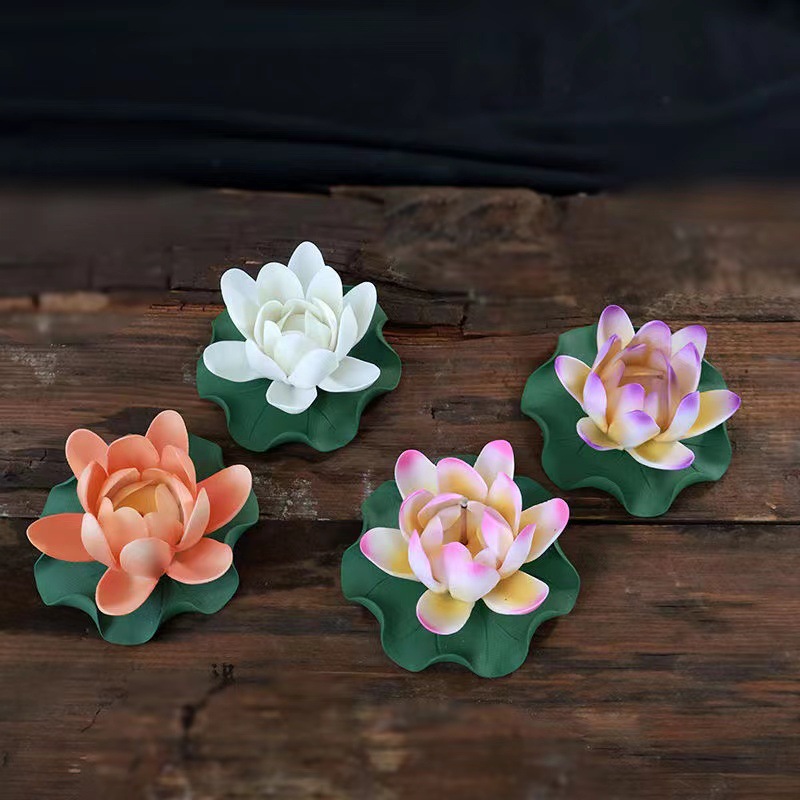 陶磁器の蓮の花の香道の置物の純粋な手作りの置物の茶室の茶道の置物のテーブルの蓮の装飾の置物