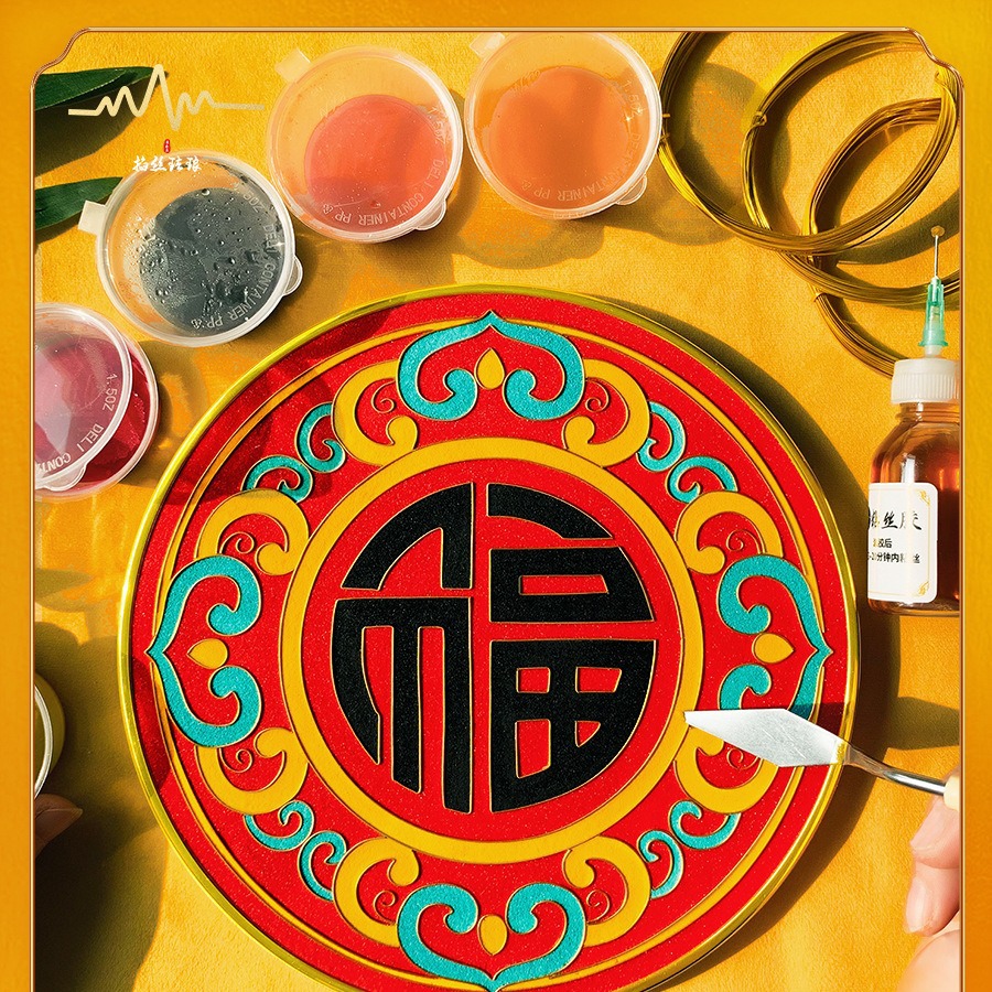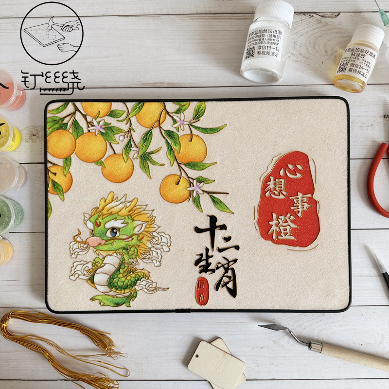 2024龍年好寓意装飾装飾品景泰青絞め糸エナメル画diy材料包国風非遺工手