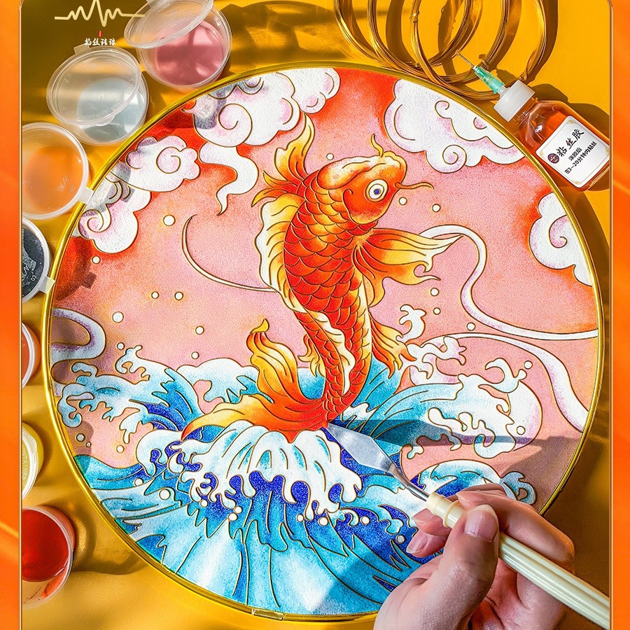 魚躍龍門好寓意景泰青絞め糸エナメルdiy彩砂非遺手材包キャンパス購買