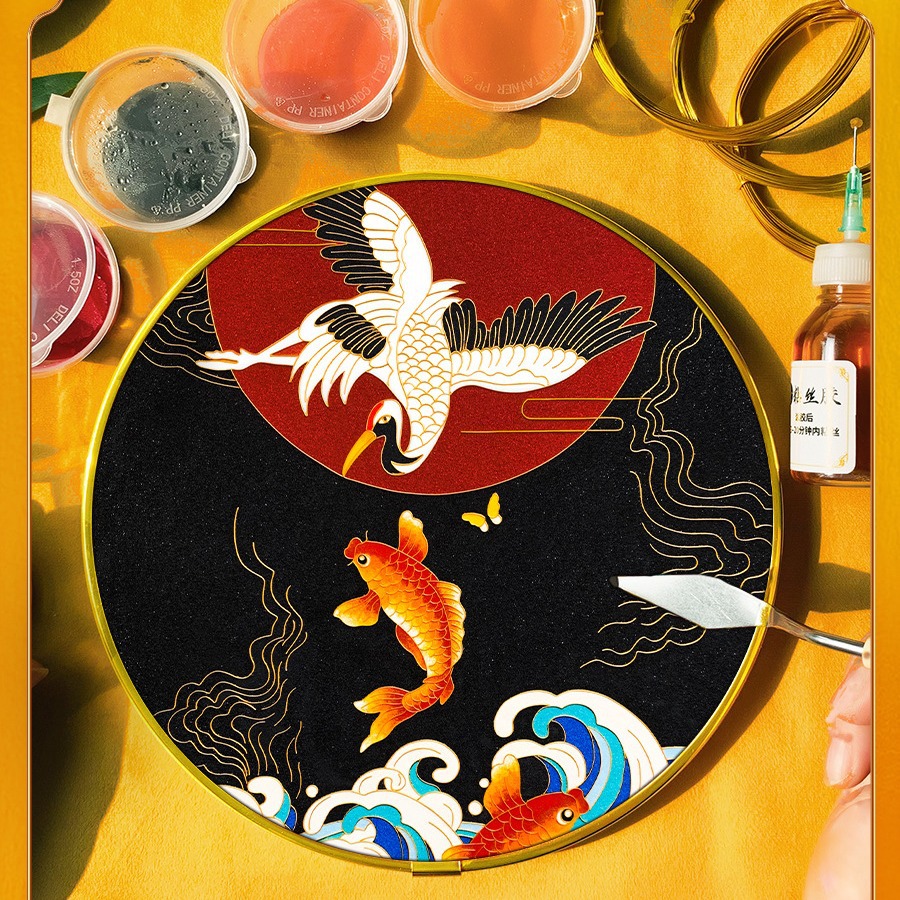 瑞鶴呈祥国潮非遺品仙鶴シリーズ景泰青絞め糸エナメル画diy手作りカラー砂材料包