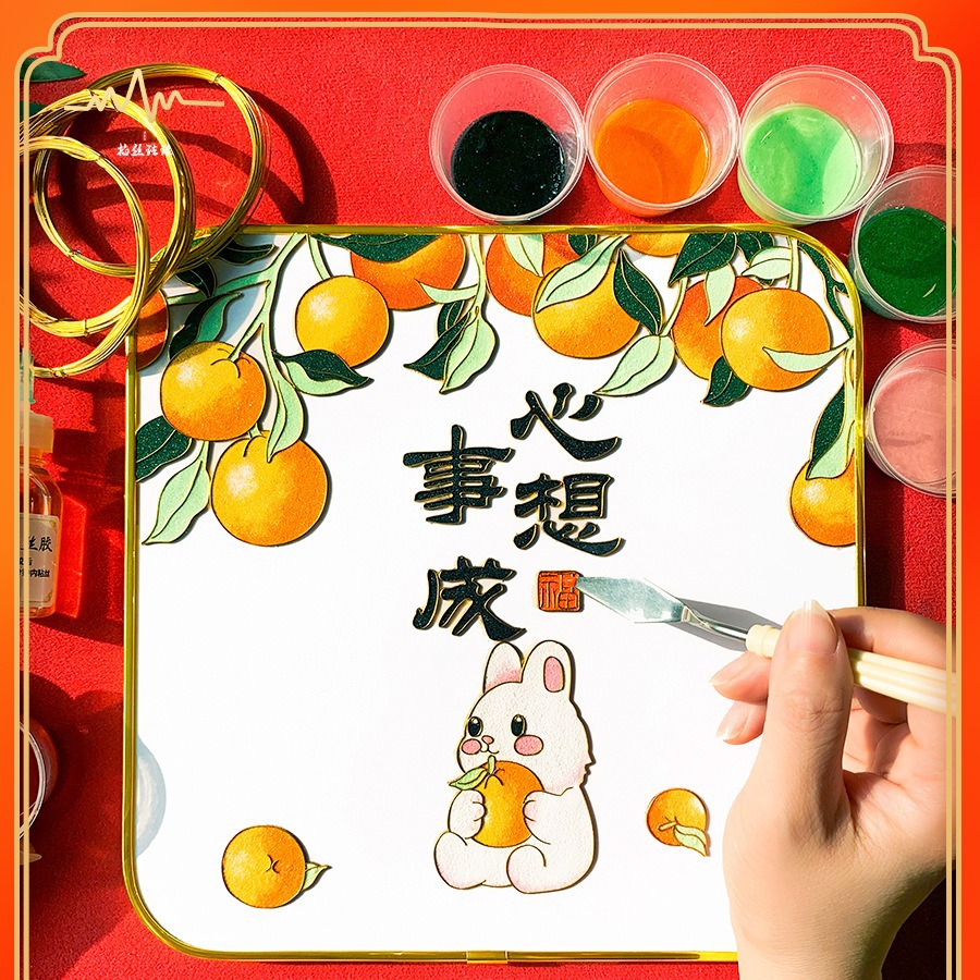 兎年限定幸福安康兎年手創景泰青絞め糸エナメルdiy彩砂材料包キャンパス購買