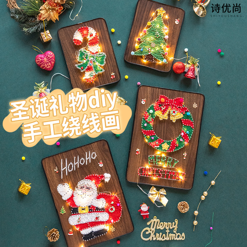 クリスマスプレゼント巻き線画diy手作り釘画材料包送男女友人花輪弦画