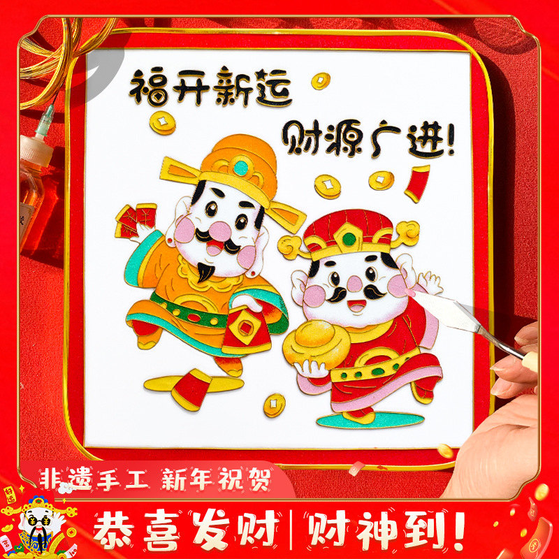 福开新運幸財神好寓意景泰青絞め糸エナメルdiy非遺手彩砂材料包